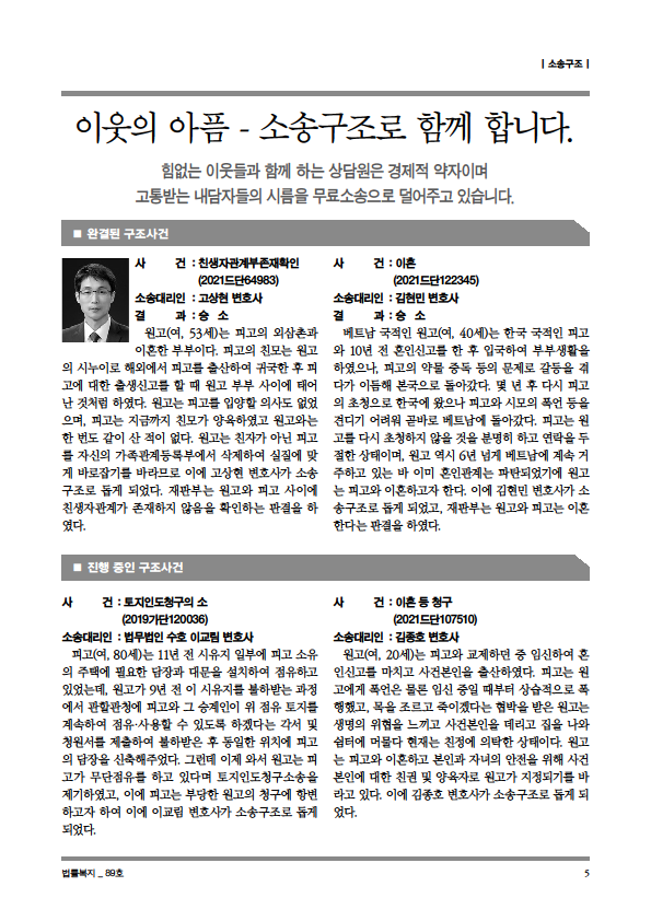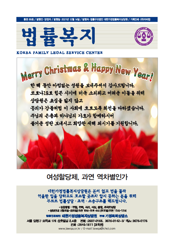 순번 49제목 법률복지 89호작성자상담원작성일2021-12-16조회990