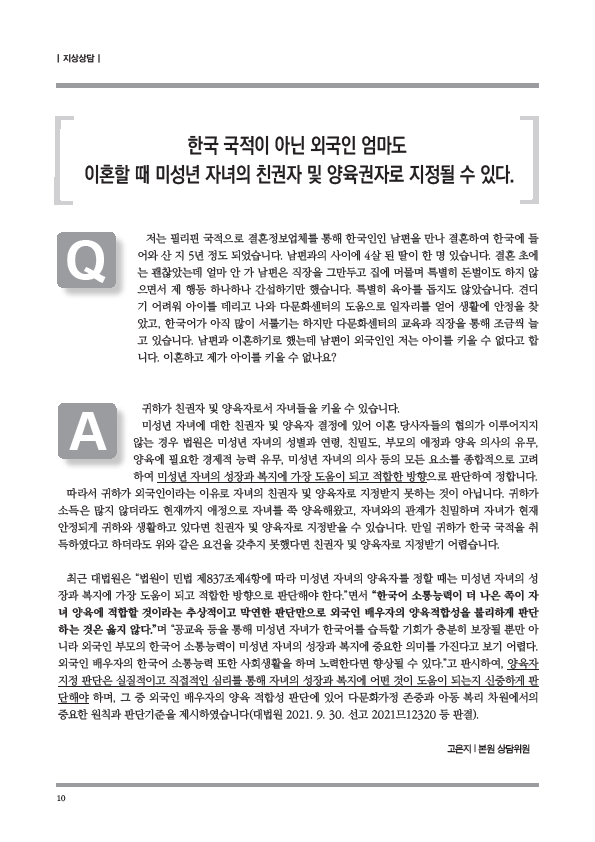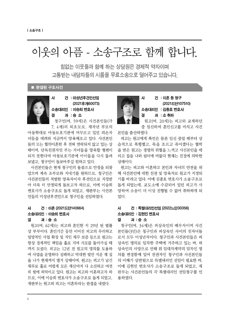 순번 47제목 법률복지 87호작성자상담원작성일2021-06-09조회1291