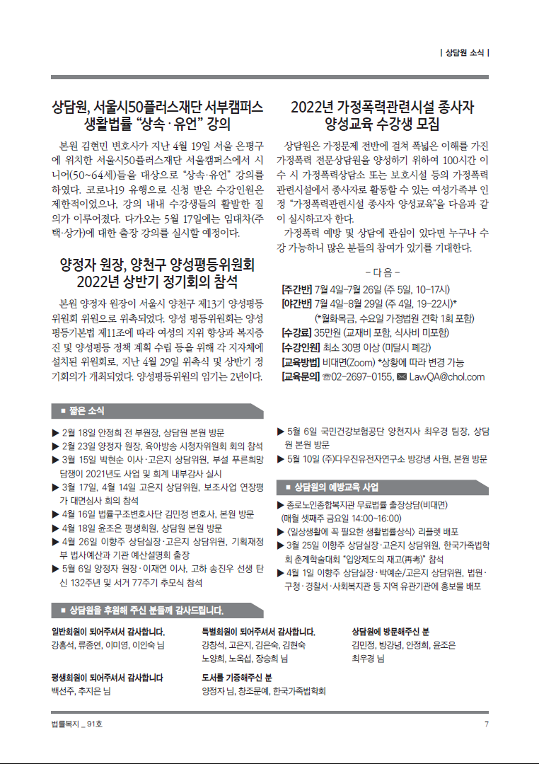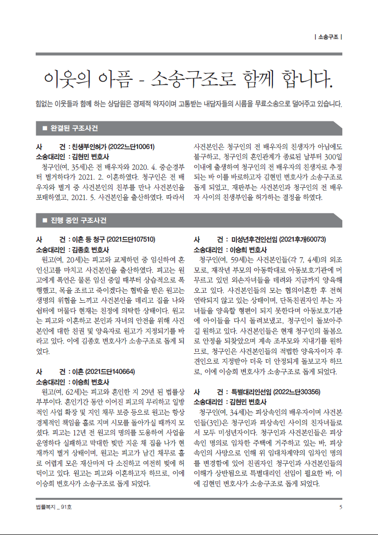 순번 51제목 법률복지 91호작성자상담원작성일2022-05-23조회802