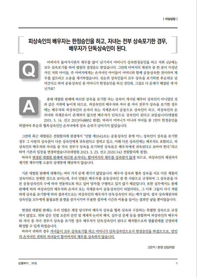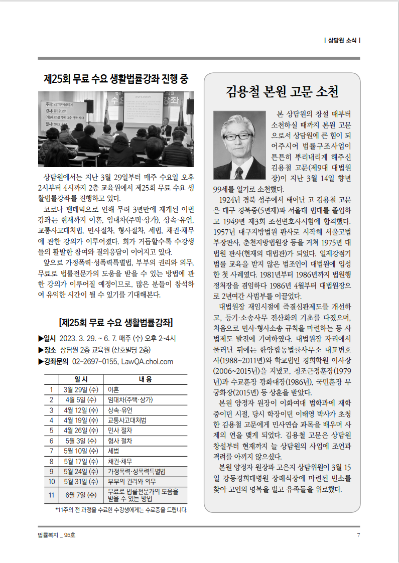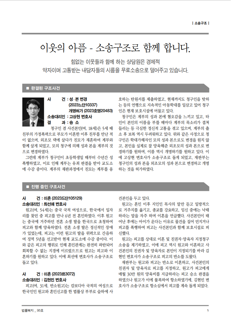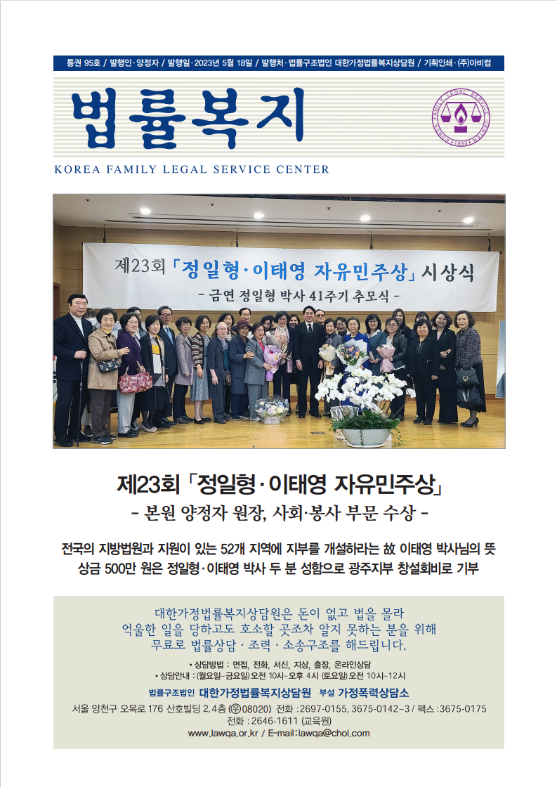 순번 55제목 법률복지 95호작성자상담원작성일2023-05-22조회529