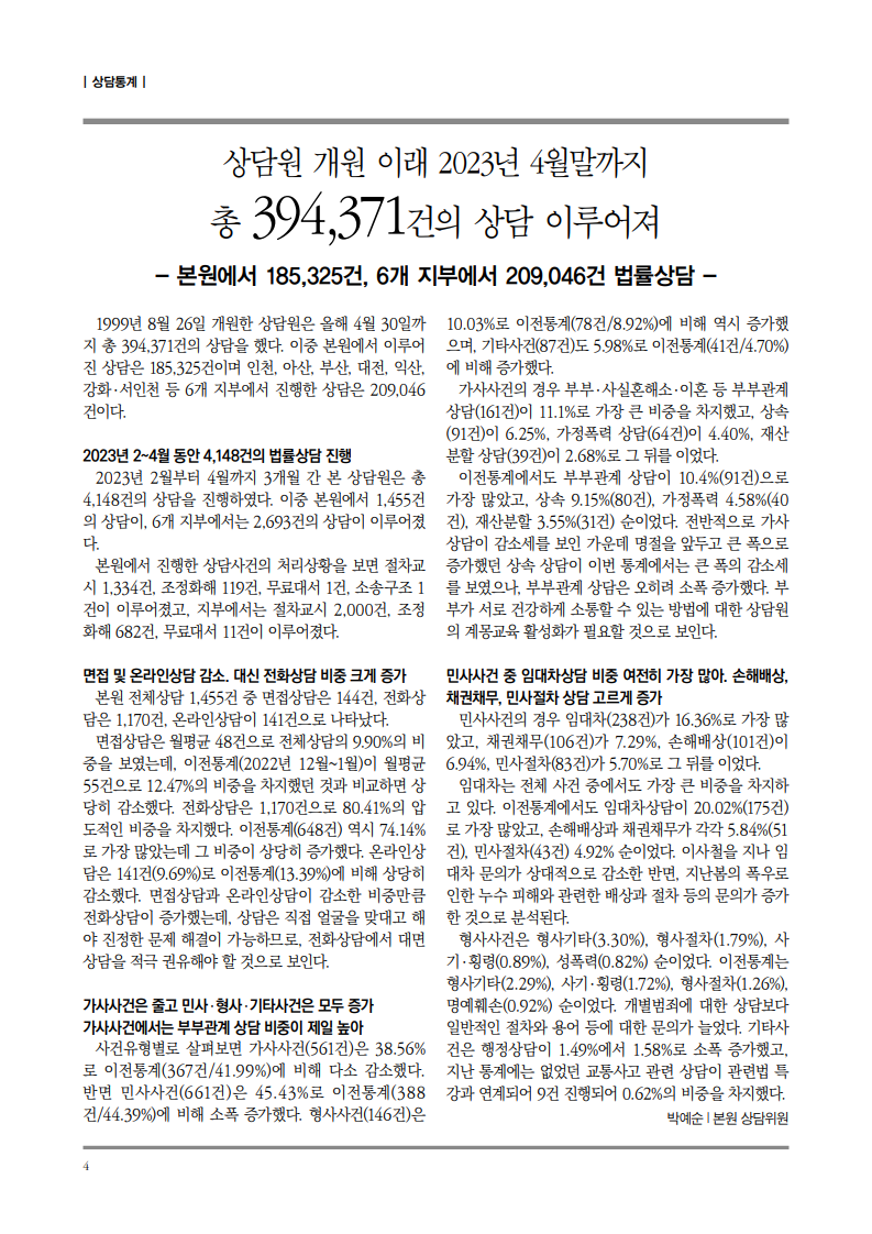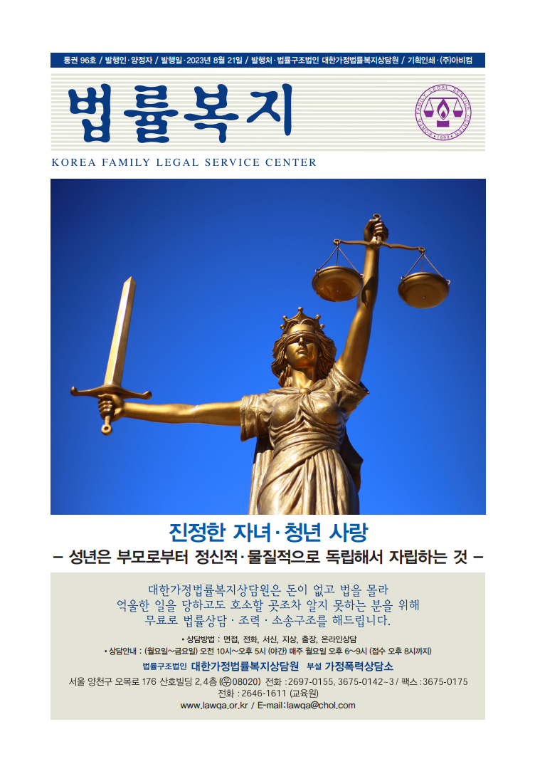 순번 56제목 법률복지 96호작성자상담원작성일2023-08-23조회463